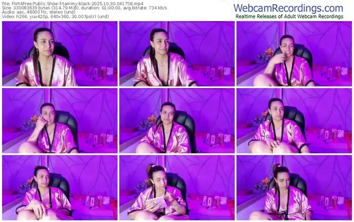 There are a total of 765 recordings (333 hours) of tammy-black from Flirt4Free available below.
