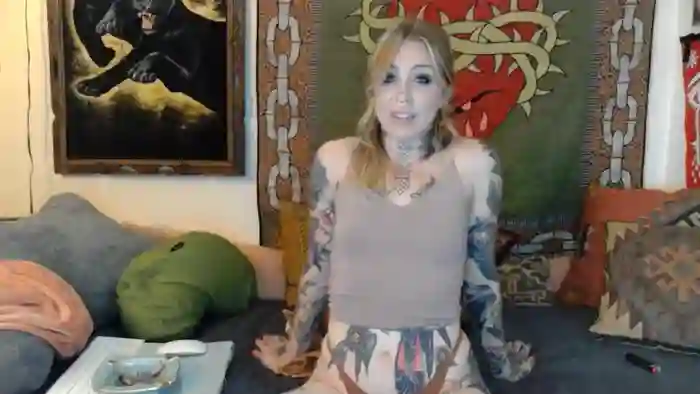 She is 32 years old, and the average age of models on Streamate is 30—making her one of the older models. Her height is 5'5, and her weight is 120 lbs. She identifies her ethnicity as white. She has a b cup size breasts, hairy pubic hair on a petite body with green eyes and blond hair.Her body art includes tattoos, piercings.