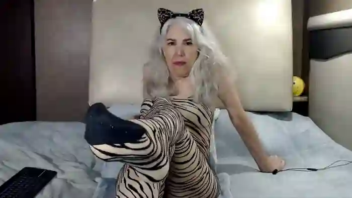 She is 42 years old, and the average age of models on Streamate is 30—making her one of the older models. Her height is 5'4, and her weight is 115 lbs. She identifies her ethnicity as white. She has a c cup size breasts, bald pubic hair on a petite body with hazel eyes and silver hair.