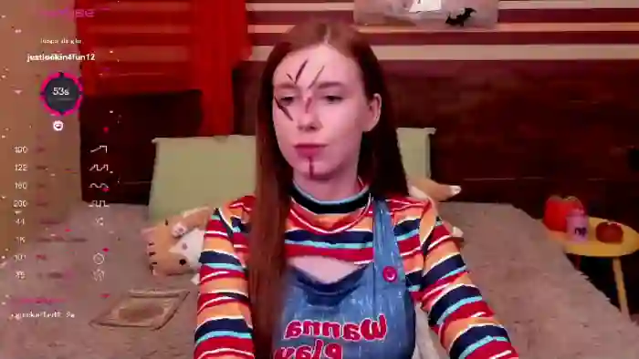 Her birthday is March 27th 2003 making her 22 years old, and the average age of models on Flirt4Free is 25—making her one of the younger models. Her height is 162cm, and her weight is 48kg. She identifies her ethnicity as caucasian. She has a shaved pubic hair, and c cup breasts on a slim body with blue eyes and long red hair.Her body art includes piercings, tattoo(s), fake breasts.