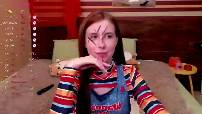 Her birthday is March 27th 2003 making her 22 years old, and the average age of models on Flirt4Free is 25—making her one of the younger models. Her height is 162cm, and her weight is 48kg. She identifies her ethnicity as caucasian. She has a shaved pubic hair, and c cup breasts on a slim body with blue eyes and long red hair.Her body art includes piercings, tattoo(s), fake breasts.