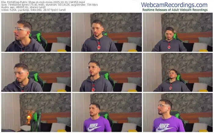 There are a total of 505 recordings (416 hours) of nick-moss from Flirt4Free available below.