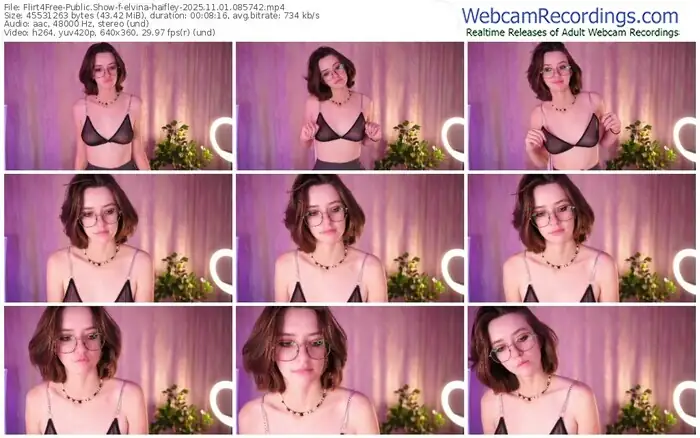 There are a total of 39 recordings (24 hours) of elvina-haifley from Flirt4Free available below.