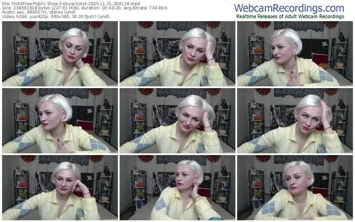 There are a total of 1,052 recordings (493 hours) of olivia-horst from Flirt4Free available below.
