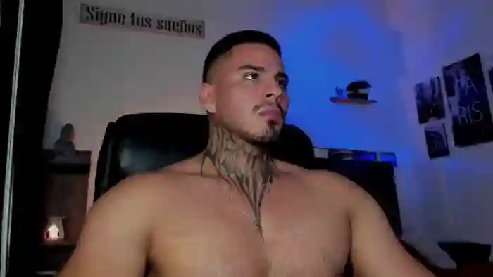 His birthday is May 3rd 1999 making him 26 years old, and the average age of models on Flirt4Free is 25—making him one of the older models. His height is 179cm, and his weight is 82kg. He identifies his ethnicity as hispanic. He has a hairy pubic hair, muscular body with black eyes and average black hair.His body art includes piercings, tattoo(s).