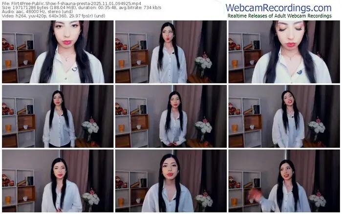 There are a total of 240 recordings (157 hours) of shauna-presta from Flirt4Free available below.