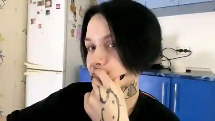 Her birthday is August 6th 2006 making her 19 years old, and the average age of models on Flirt4Free is 25—making her one of the younger models. Her height is 163cm, and her weight is 53kg. She identifies her ethnicity as caucasian. She has a shaved pubic hair, and b cup breasts on a slim body with grey eyes and average black hair.Her body art includes piercings, tattoo(s).