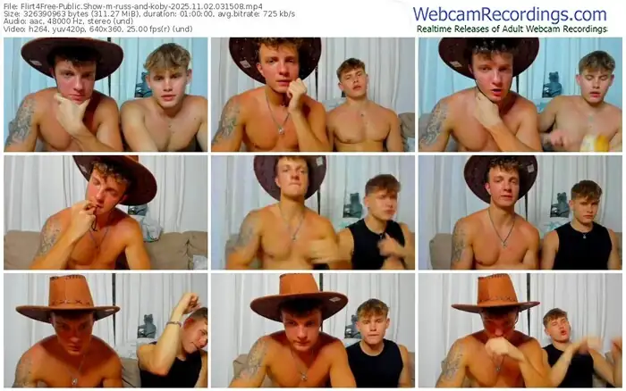 There are a total of 12 recordings (8 hours) of russ-and-koby from Flirt4Free available below.