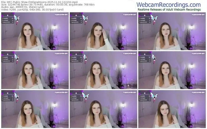 There are a total of 23 recordings (8 hours) of MilanaMoons from MyFreeCams available below.