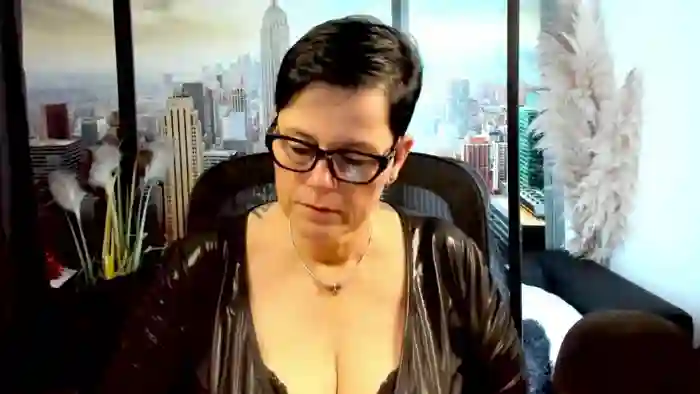 She is 54 years old, and the average age of models on Streamate is 30—making her one of the older models. Her height is 5'7, and her weight is 209 lbs. She identifies her ethnicity as white. She has a d cup size breasts, hairy pubic hair on a bbw body with blue eyes and black hair.Her body art includes tattoos.