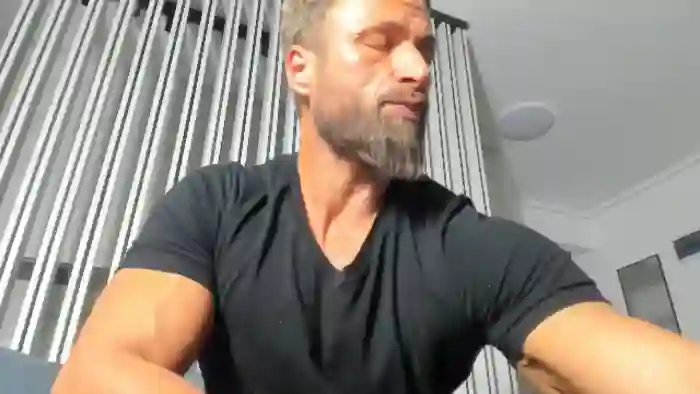 His birthday is July 17th 1987 making him 38 years old, and the average age of models on Flirt4Free is 25—making him one of the older models. His height is 180cm, and his weight is 93kg. He identifies his ethnicity as caucasian. He has a trimmed pubic hair, muscular body with blue eyes and short blonde hair.