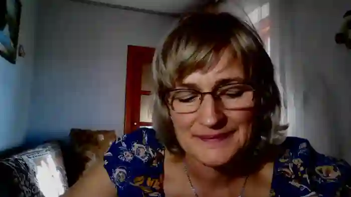 She is 48 years old, and the average age of models on Streamate is 30—making her one of the older models. Her height is 5'5, and her weight is 178 lbs. She identifies her ethnicity as european. She has a b cup size breasts, trimmed pubic hair on an average body with blue eyes and salt and pepper hair.