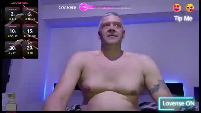 He is 48 years old, and the average age of models on Streamate is 30—making him one of the older models. His height is 6'0, and his weight is 208 lbs. He identifies his ethnicity as white. He has a uncut average cock, 40 (102cm) chest smooth, body hair, trimmed pubic hair on an average body with brown eyes and salt and pepper hair.His body art includes tattoos.