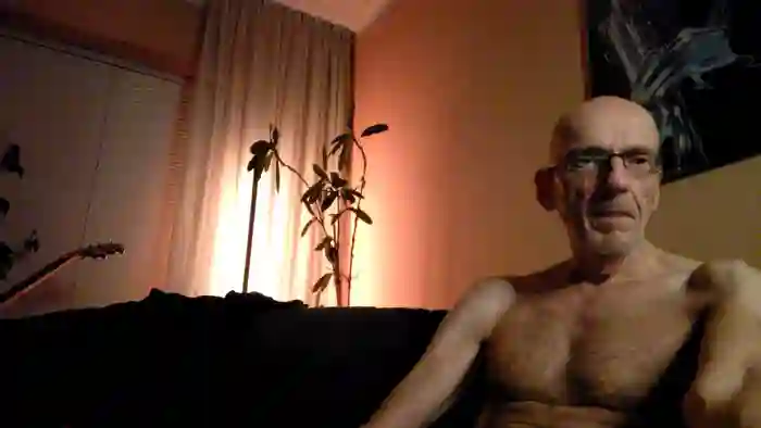 He is 54 years old, and the average age of models on Streamate is 30—making him one of the older models. His height is 6'2, and his weight is 160 lbs. He identifies his ethnicity as white. He has a uncut big cock, 36 (91cm) chest hairy, body hair, bald pubic hair on a slender body with green eyes and dyed hair.