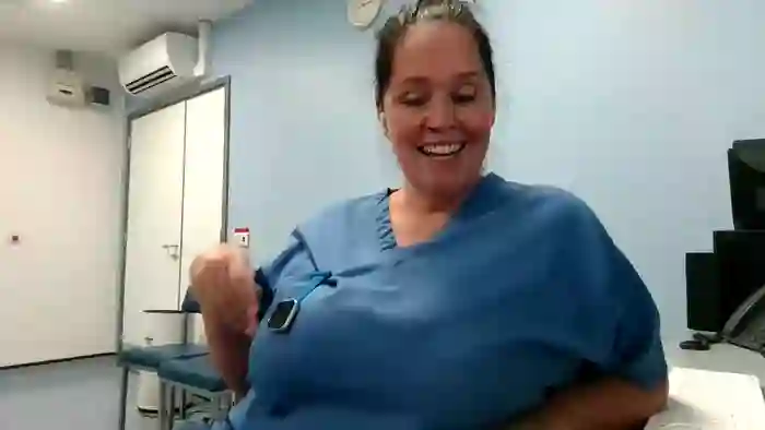 She is 46 years old, and the average age of models on Streamate is 30—making her one of the older models. She identifies her ethnicity as white. She has a on a bbw body with brown hair.