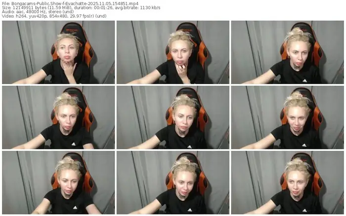 There are a total of 10 recordings (5 hours) of Evachatte from Bongacams available below.