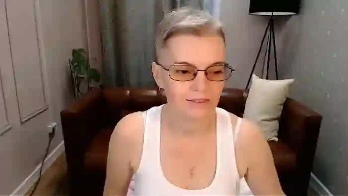 Her birthday is February 19th 1981 making her 44 years old, and the average age of models on Flirt4Free is 25—making her one of the older models. Her height is 160cm, and her weight is 46kg. She identifies her ethnicity as caucasian. She has a trimmed pubic hair, and b cup breasts on a slim body with brown eyes and short white hair.