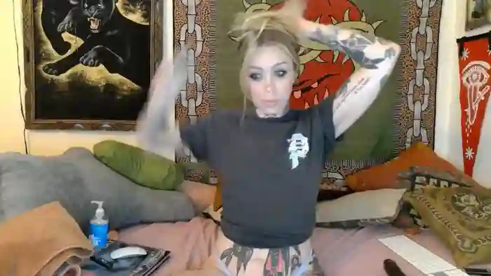 She is 32 years old, and the average age of models on Streamate is 30—making her one of the older models. Her height is 5'5, and her weight is 120 lbs. She identifies her ethnicity as white. She has a b cup size breasts, hairy pubic hair on a petite body with green eyes and blond hair.Her body art includes tattoos, piercings.