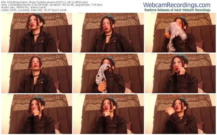 There are a total of 708 recordings (369 hours) of petite-ariana from Flirt4Free available below.