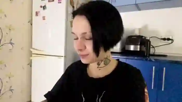 Her birthday is August 6th 2006 making her 19 years old, and the average age of models on Flirt4Free is 25—making her one of the younger models. Her height is 163cm, and her weight is 53kg. She identifies her ethnicity as caucasian. She has a shaved pubic hair, and b cup breasts on a slim body with grey eyes and average black hair.Her body art includes piercings, tattoo(s).
