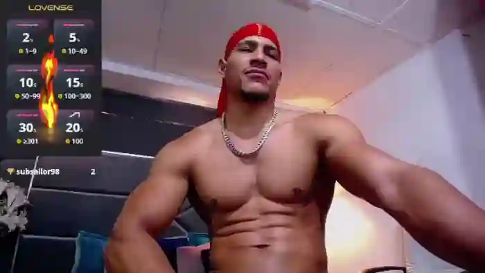 His birthday is March 21st 1998 making him 27 years old, and the average age of models on Flirt4Free is 25—making him one of the older models. His height is 177cm, and his weight is 83kg. He identifies his ethnicity as black. He has a shaved pubic hair, muscular body with black eyes and short black hair.