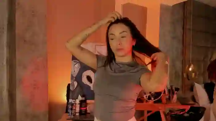 She is 24 years old, and the average age of models on Streamate is 30—making her one of the younger models. Her height is 5'0, and her weight is 96 lbs. She identifies her ethnicity as hispanic. She has a a cup size breasts, bald pubic hair on a petite body with brown eyes and brown hair.Her body art includes tattoos.