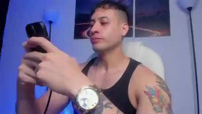 His birthday is July 6th 1998 making him 27 years old, and the average age of models on Flirt4Free is 25—making him one of the older models. His height is 186cm, and his weight is 86kg. He identifies his ethnicity as hispanic. He has a trimmed pubic hair, athletic body with hazel eyes and short black hair.His body art includes piercings, tattoo(s).