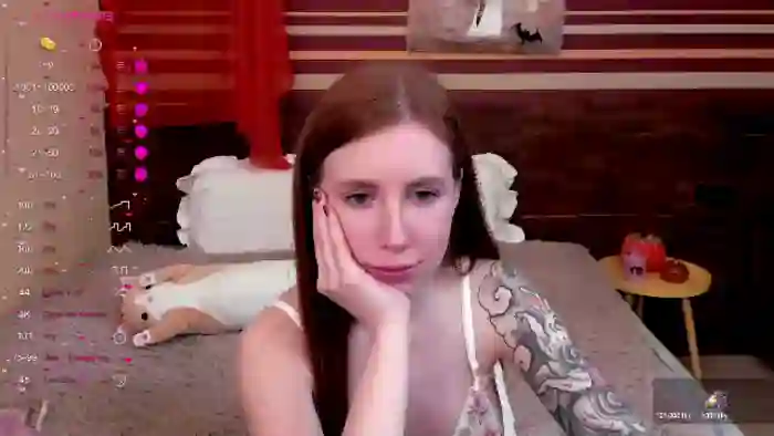 Her birthday is March 27th 2003 making her 22 years old, and the average age of models on Flirt4Free is 25—making her one of the younger models. Her height is 162cm, and her weight is 48kg. She identifies her ethnicity as caucasian. She has a shaved pubic hair, and c cup breasts on a slim body with blue eyes and long red hair.Her body art includes piercings, tattoo(s), fake breasts.