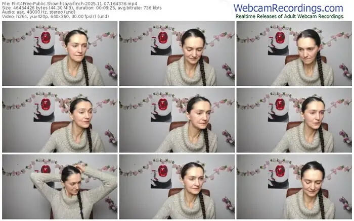 There are a total of 315 recordings (183 hours) of taya-finch from Flirt4Free available below.