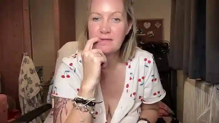 She is 41 years old, and the average age of models on Streamate is 30—making her one of the older models. Her height is 5'4, and her weight is 189 lbs. She identifies her ethnicity as white. She has a dd/e cup size breasts, bald pubic hair on a curvaceous body with hazel eyes and blond hair.Her body art includes tattoos, piercings.