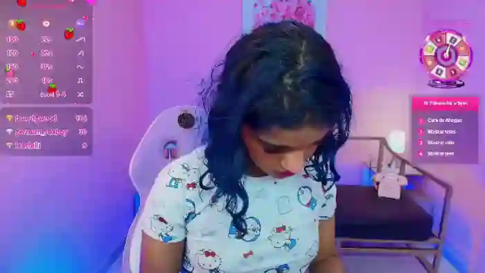 Her birthday is July 7th 2006 making her 19 years old, and the average age of models on Flirt4Free is 25—making her one of the younger models. Her height is 165cm, and her weight is 55kg. She identifies her ethnicity as pacific islander. She has a shaved pubic hair, and a cup breasts on a slim body with brown eyes and shoulder multi color hair.Her body art includes piercings.