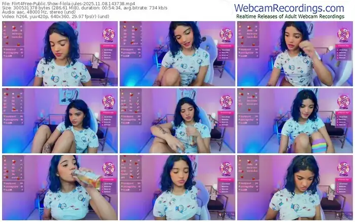 There are a total of 300 recordings (110 hours) of lola-jules from Flirt4Free available below.