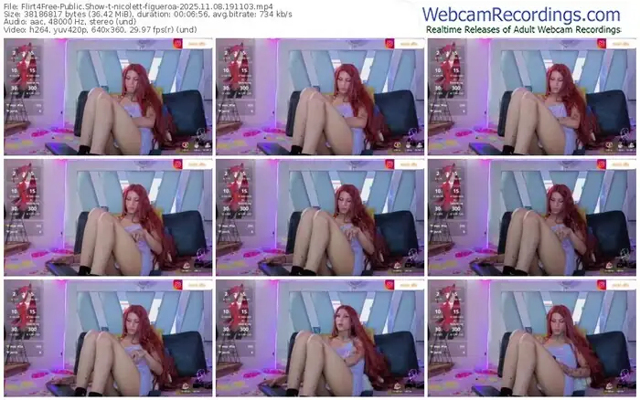 There are a total of 883 recordings (546 hours) of nicolett-figueroa from Flirt4Free available below.