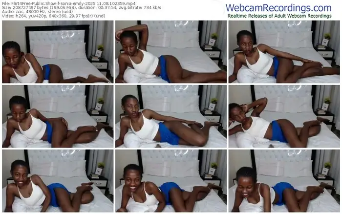 There are a total of 320 recordings (207 hours) of sonia-emily from Flirt4Free available below.