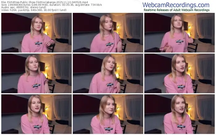 There are a total of 58 recordings (37 hours) of kittie-labarge from Flirt4Free available below.