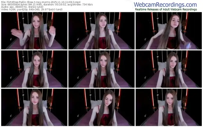 There are a total of 343 recordings (193 hours) of roxy-morris from Flirt4Free available below.