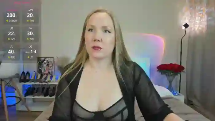 Her birthday is March 11th 1989 making her 36 years old, and the average age of models on Flirt4Free is 25—making her one of the older models. Her height is 167cm, and her weight is 58kg. She identifies her ethnicity as caucasian. She has a trimmed pubic hair, and b cup breasts on a average body with green eyes and very long blonde hair.Her body art includes piercings, tattoo(s).