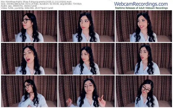 There are a total of 240 recordings (157 hours) of shauna-presta from Flirt4Free available below.