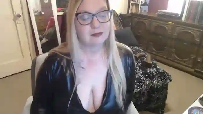 She is 48 years old, and the average age of models on Streamate is 30—making her one of the older models. Her height is 5'5, and her weight is 200 lbs. She identifies her ethnicity as white. She has a d cup size breasts, hairy pubic hair on a bbw body with green eyes and blond hair.Her body art includes tattoos.