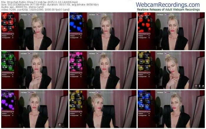 There are a total of 24 recordings (5 hours) of CindySw from Stripchat available below.
