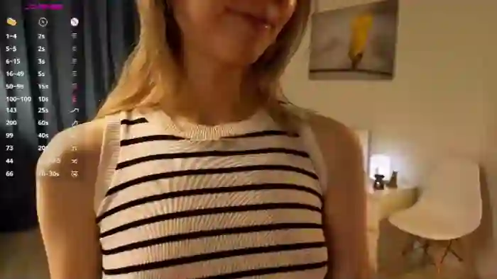 Her birthday is September 4th 2006 making her 19 years old, and the average age of models on Flirt4Free is 25—making her one of the younger models. Her height is 160cm, and her weight is 48kg. She identifies her ethnicity as caucasian. She has a shaved pubic hair, and a cup breasts on a athletic body with black eyes and shoulder blonde hair.Her body art includes piercings, tattoo(s).