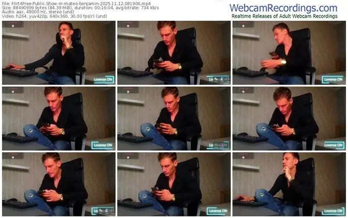 There are a total of 314 recordings (221 hours) of mateo-benjamin from Flirt4Free available below.