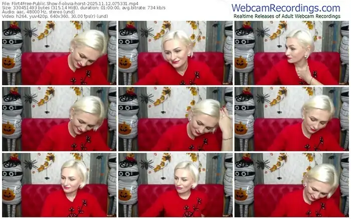 There are a total of 1,052 recordings (493 hours) of olivia-horst from Flirt4Free available below.