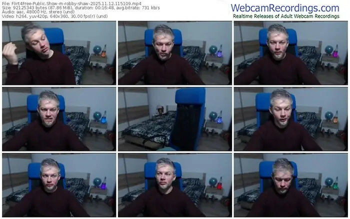 There are a total of 882 recordings (484 hours) of robby-shaw from Flirt4Free available below.