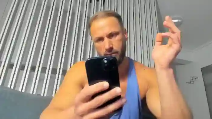 His birthday is July 17th 1987 making him 38 years old, and the average age of models on Flirt4Free is 25—making him one of the older models. His height is 180cm, and his weight is 93kg. He identifies his ethnicity as caucasian. He has a trimmed pubic hair, muscular body with blue eyes and short blonde hair.
