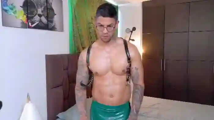 His birthday is October 9th 1987 making him 38 years old, and the average age of models on Flirt4Free is 25—making him one of the older models. His height is 180cm, and his weight is 92kg. He identifies his ethnicity as hispanic. He has a trimmed pubic hair, muscular body with brown eyes and short black hair.His body art includes piercings, tattoo(s).