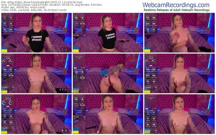 There are a total of 166 recordings (99 hours) of ArolinaNightt from ePlay available below.