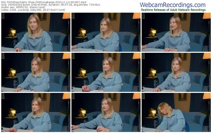 There are a total of 58 recordings (37 hours) of kittie-labarge from Flirt4Free available below.
