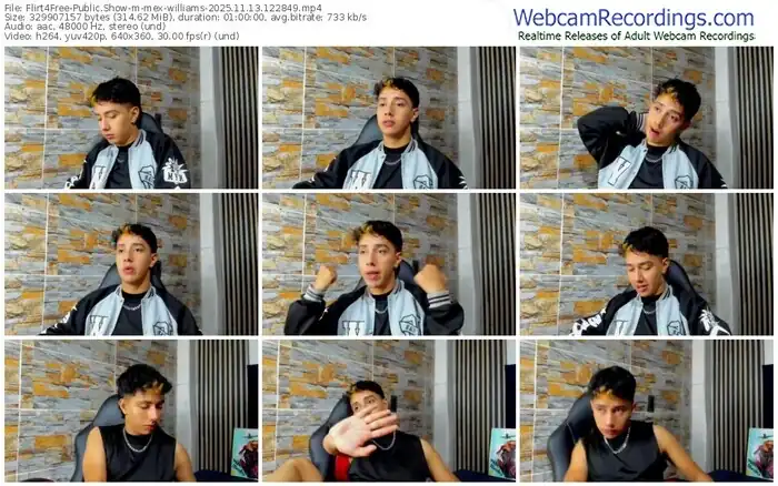 There are a total of 129 recordings (67 hours) of mex-williams from Flirt4Free available below.