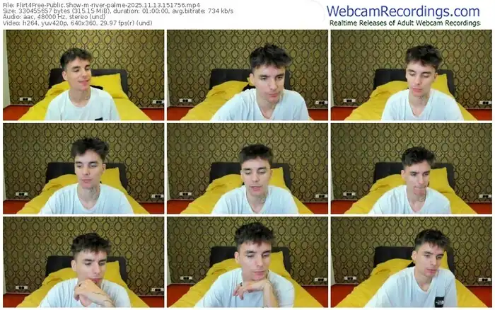 There are a total of 212 recordings (157 hours) of river-palme from Flirt4Free available below.